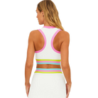 The Gwen Top is a cropped active tank designed for both movement and style, featuring ribbed armholes and neckline for a comfortable, secure fit. A playful colorblock band under the bust adds a pop of personality, while our signature cable knit fabric brings texture and softness.