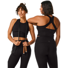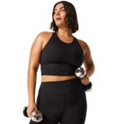 Chase your all. Beyond Yoga's new cropped tank offers enhanced support thanks to powermesh layers on built-in shelf bra, as well as inside wide shoulder straps for non-restrictive comfort. Flattering, functional, and up for the workout with racerback design. Made of their POWERBEYOND™ sport fabric that meets you at your most ambitious.