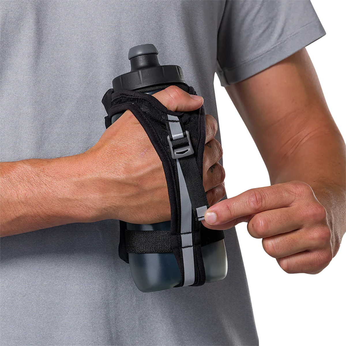 - Flask features a sweat-channeled, no-slip grip pad
