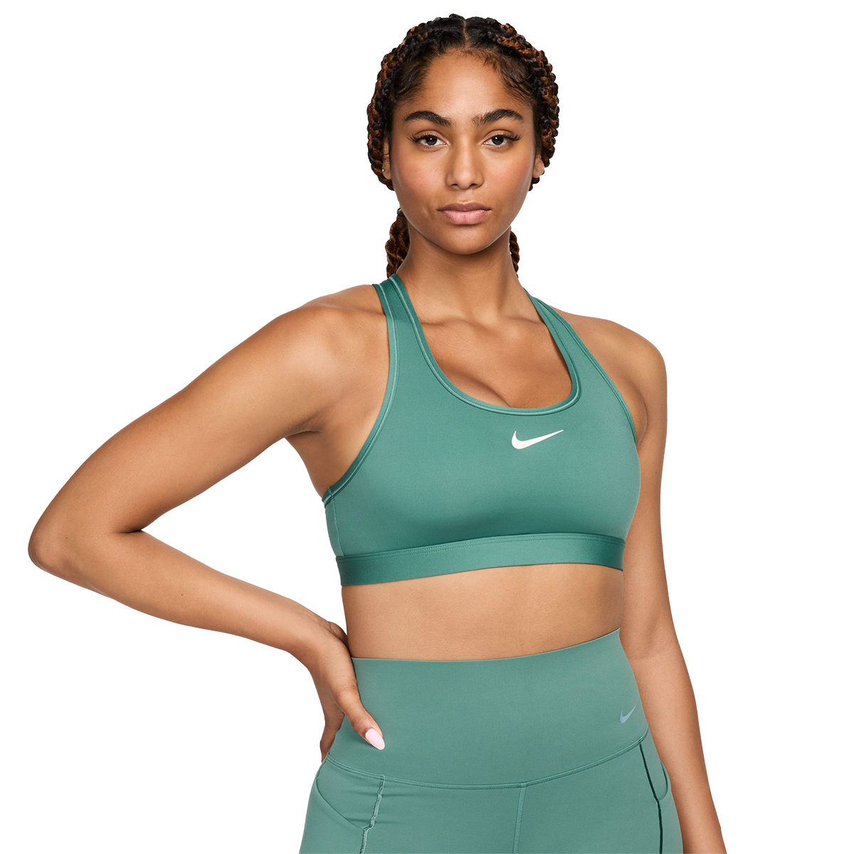 You're on the move. Your padding shouldn't be. This Swoosh bra's sewn-in pads stay in place so you can work hard without worrying about them shifting or folding. Great for training workouts and dance classes, medium support gives you a snug hold that helps keep everything in place. Plus, sweat-wicking, adaptive material quickly recovers its shape so you can stay comfortable throughout your workout.
