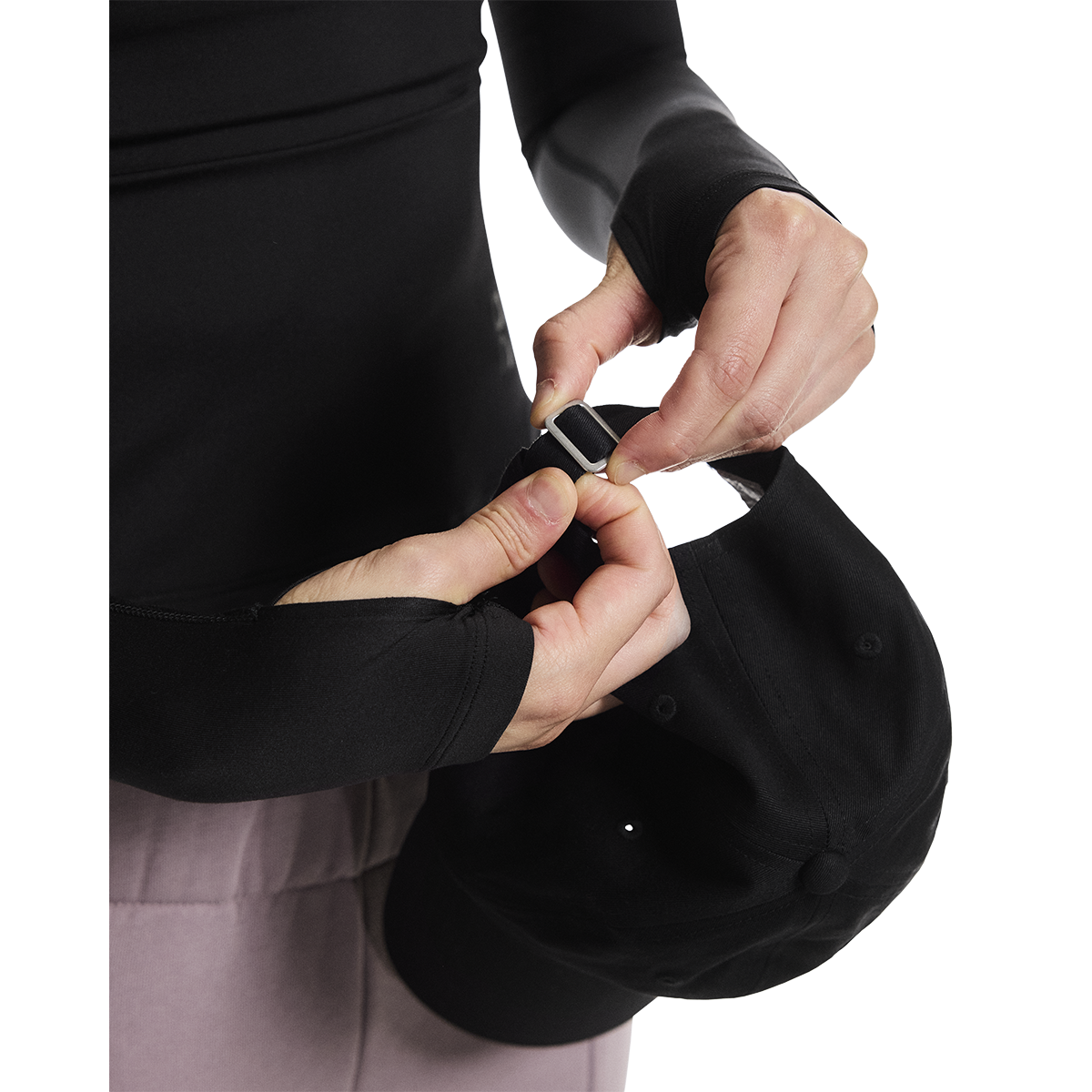 - Flat metal closure to adjust to different head sizes