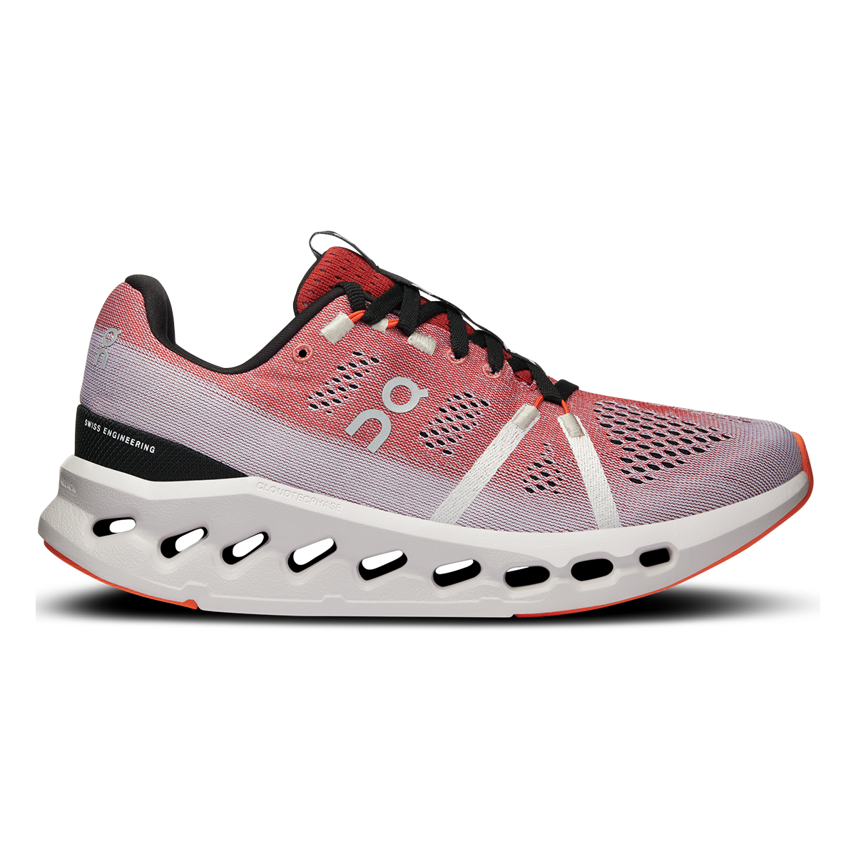 Cloudsurfer means comfort. Engineered mesh delivers the perfect balance of breathability and hold. The upper supports the forefoot as you transition from soft landing into explosive take-off.